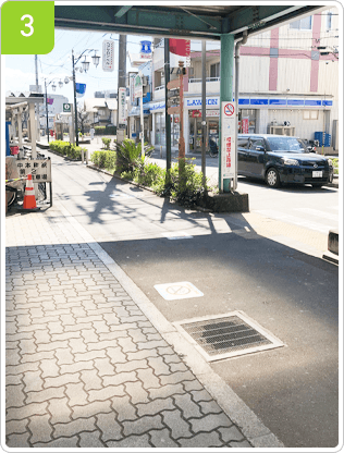 階段を下りるとコンビニの前にたどり着きます。